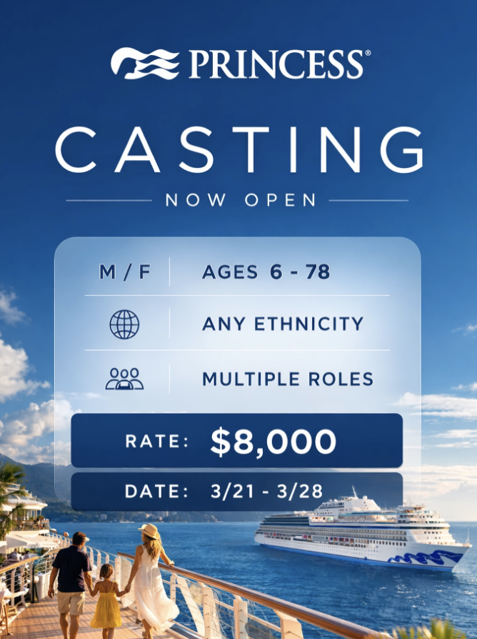 SUBMISSION DEADLINE: March 18th, 2026 Email: placement@barbizonusa.com Subject line: PrincessCruiseNYC_First/Last Name Example: PrincessCruiseNYC_Jane DoeΒ Send at least 3 pics (include a dated photo and full body) Include age, height, weight, and all contact info.Β Share behind-the-scenes photos of you at the casting! Tag us on socials IGΒ @barbizonmodelΒ ,Β @barbizonmodelsΒ , orΒ Barbizon USA |