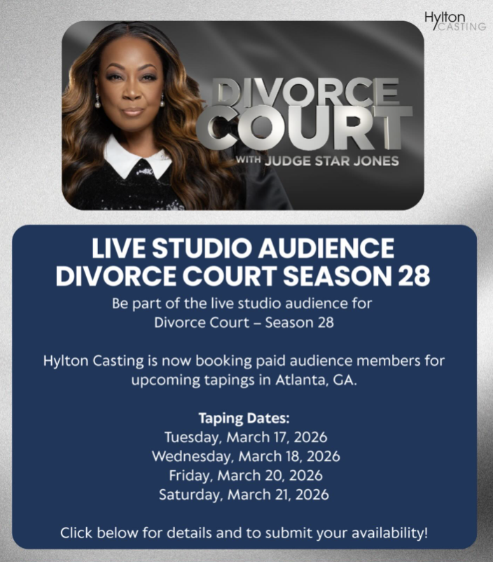 CASTING INFORMATION:Β Now Booking: Live Studio Audience β Divorce Court Season 28 If you are interested in learning more, please submit with the guidelines below. Share behind-the-scenes photos of you at the casting! Tag us on socials IGΒ @barbizonmodelΒ ,Β @barbizonmodelsΒ , orΒ Barbizon USA |